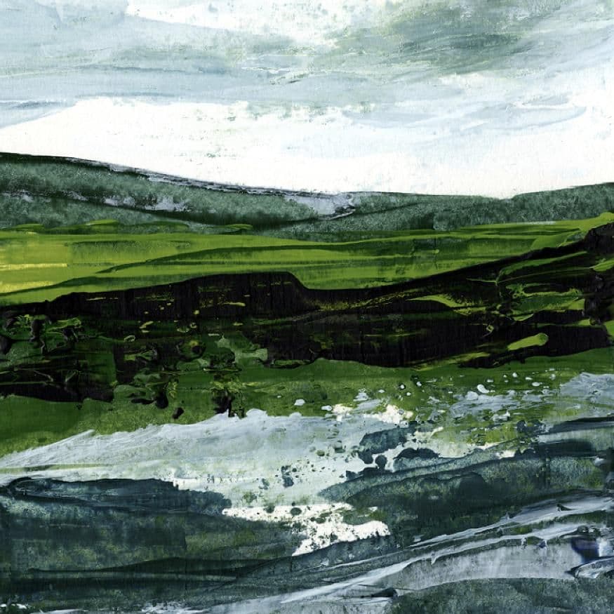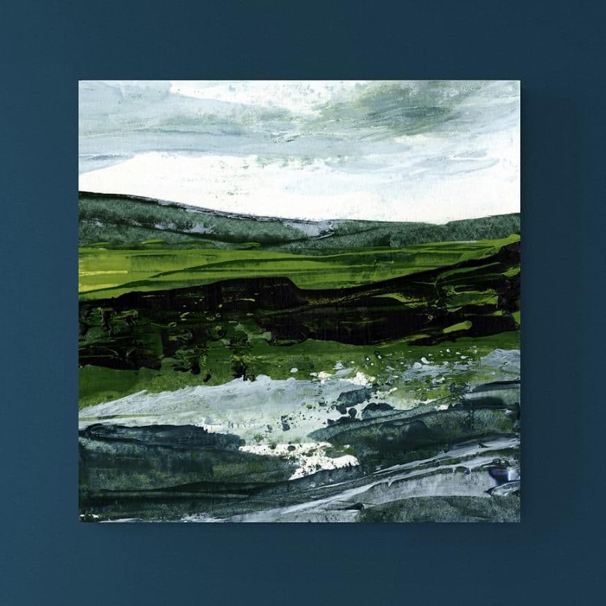 This fine art giclée print, ‘As the Waves Crash on the Rock’s by Louise Levine, forms part of her ‘Land and Sea’ Collection. Inspired by the powerful connection between land and sea, it captures verdant green landscapes set against dramatic black cliffs, with striking teal waves surging below. The result is a breathtaking vista that stirs the senses and invigorates the soul.