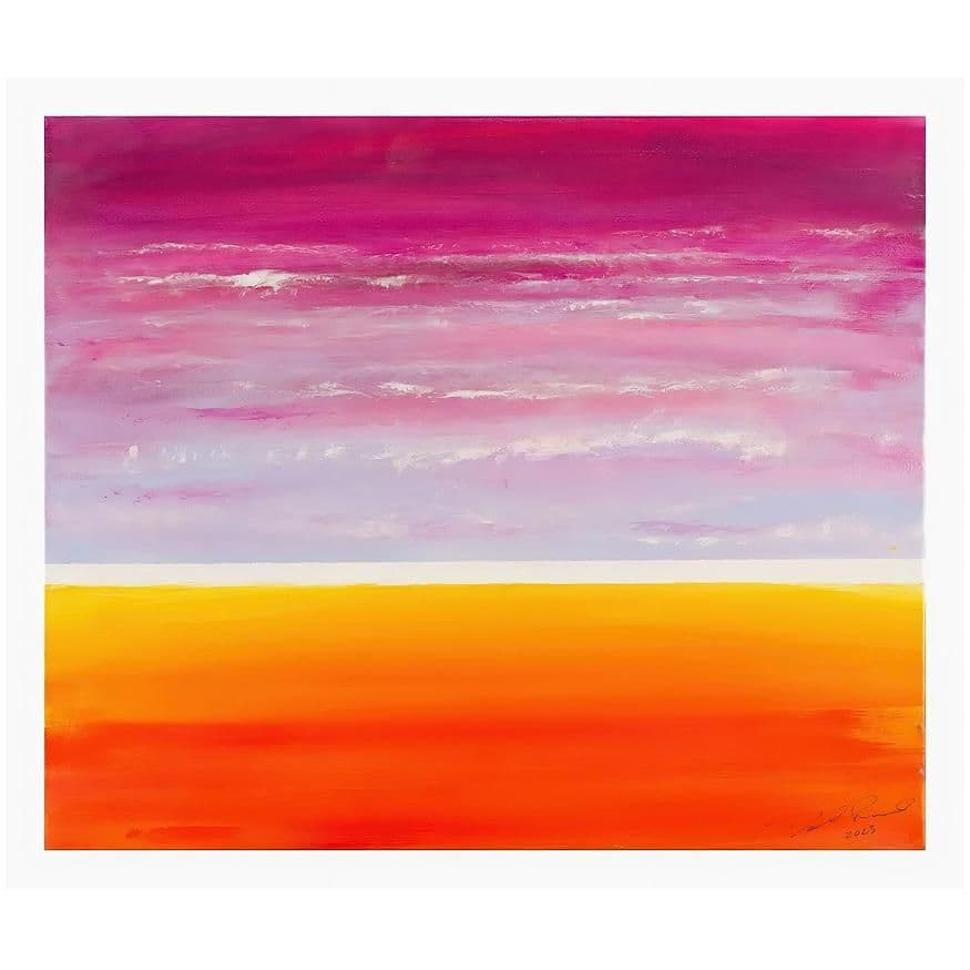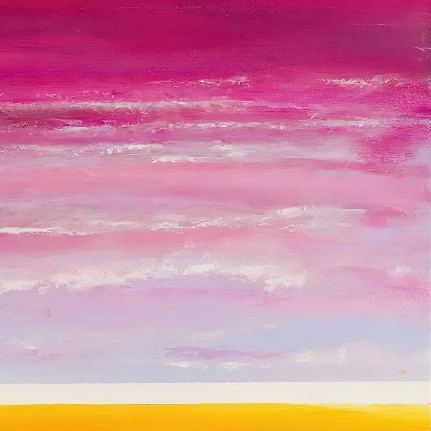 The image is taken from an original acrylic painting by the artist in which the viewer is invited, as if in a daydream, to fill in the details within their mind to this delightfully undefined scene. Try adding a boat to the horizon perhaps or maybe walkers on the beach, for this is a place for quiet reverie, a space to breathe, to wander, to dream.
