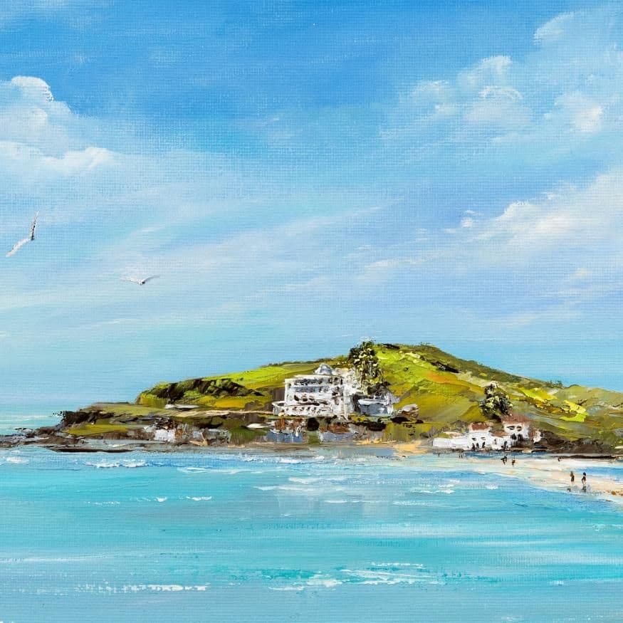 This artist signed art print of Burgh Island, looks out from Bigbury-on-Sea and is taken from an original oil painting by Gail Morris.