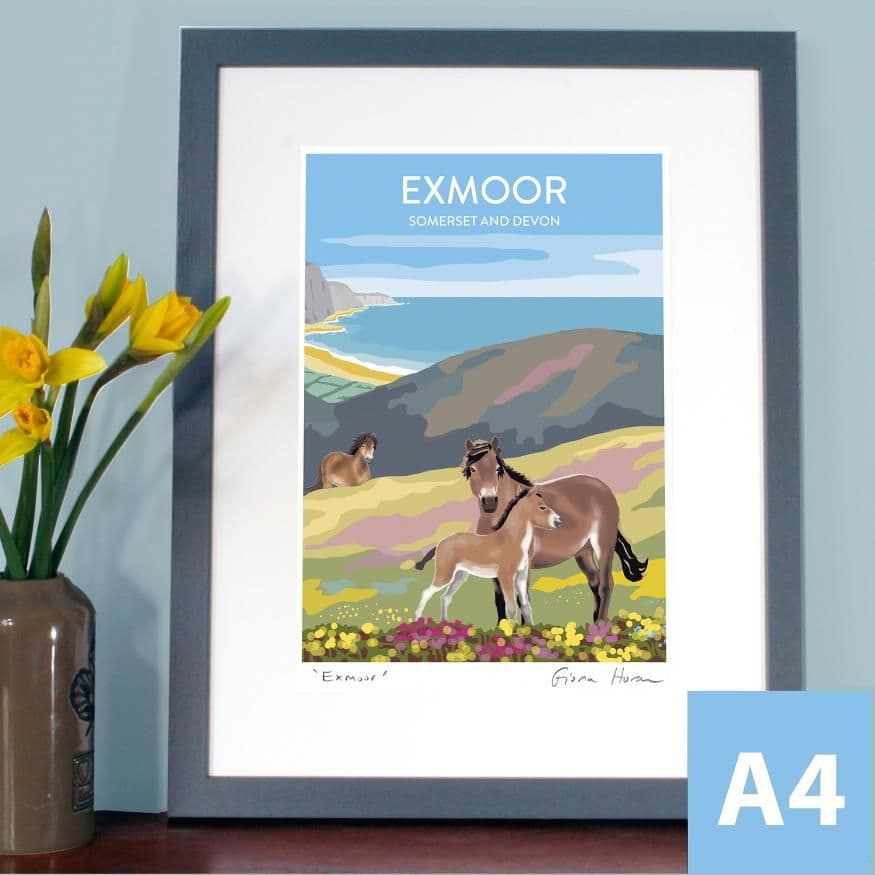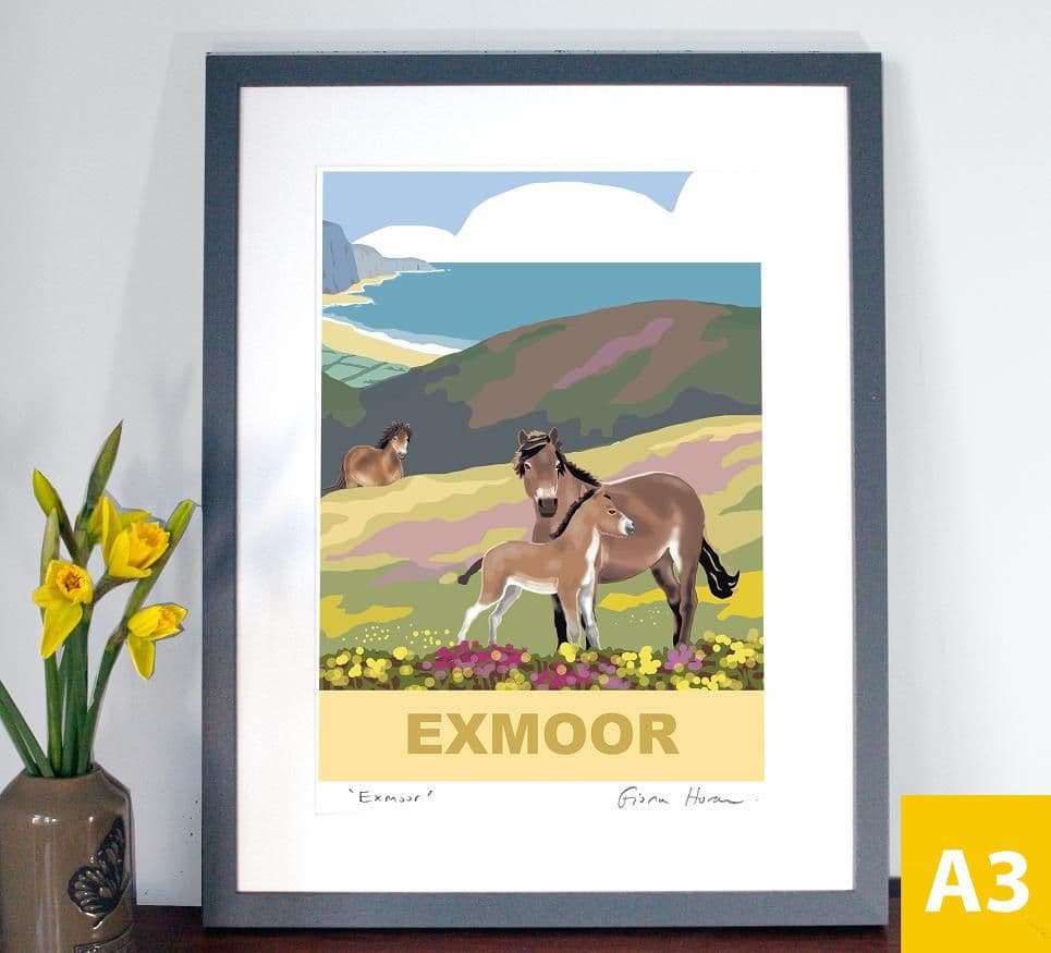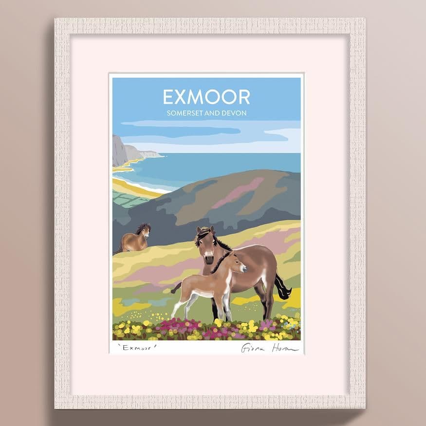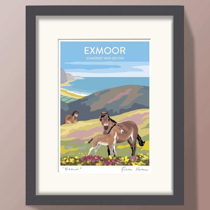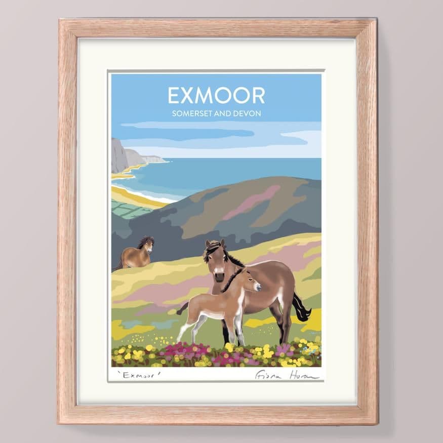 This coastal art print by Fiona Horan shows the beautiful Ponies that roam Exmoor.