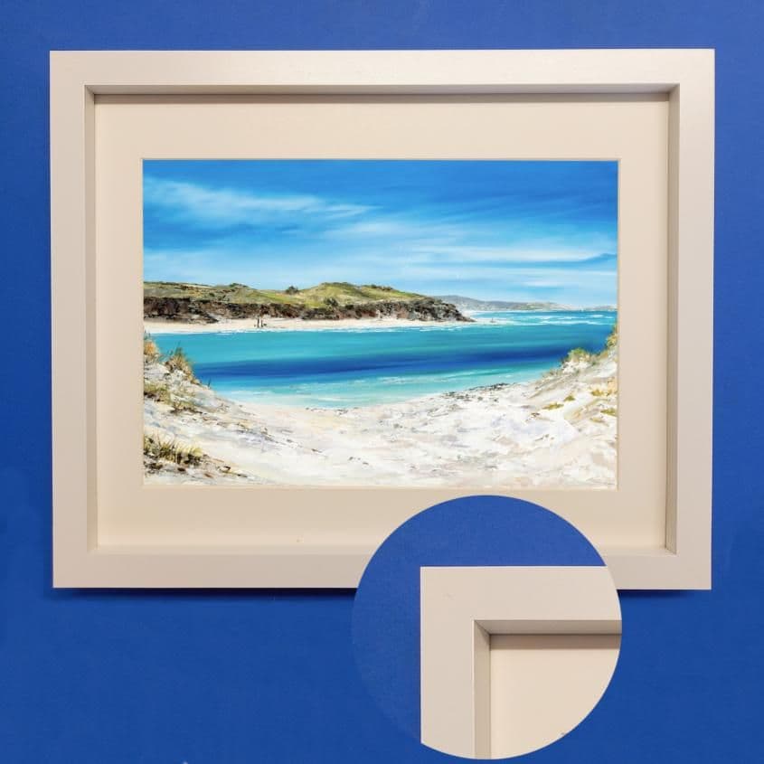 This beautiful print of Hayle dunes to Porthkidney beach is taken from an original oil painting by Gail Morris.