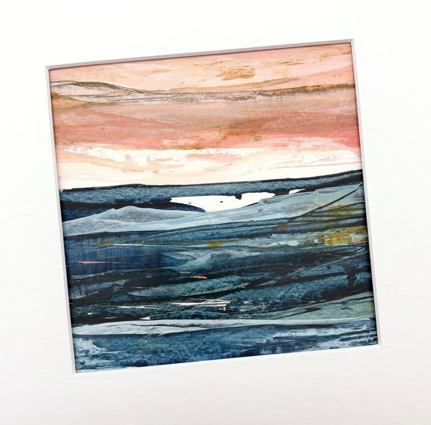 This original acrylic contemporary painting on 300gsm paper comes mounted ready for framing in a standard 8” x 8” frame.