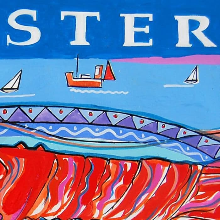 Inspired by the coast he depicts fish, sea life and seafood’s, together with colourful images of maps, coastal towns and villages. He is happy to do commissions.