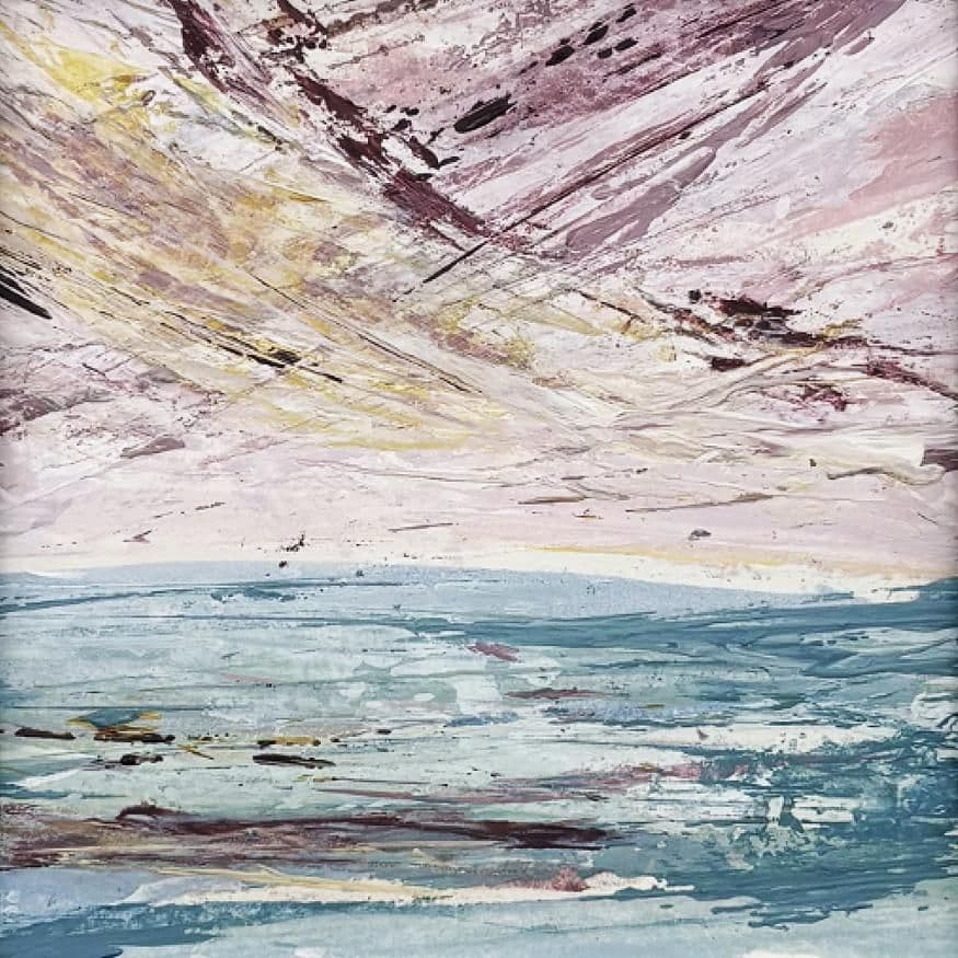 Entitled ‘Peaceful Sanctuary’ this original semi abstract seascape painting by Louise Levine was inspired by those calm days by the sea, where the waters is gently lapping the shore, the colours are gentle and your soul feels soothed.