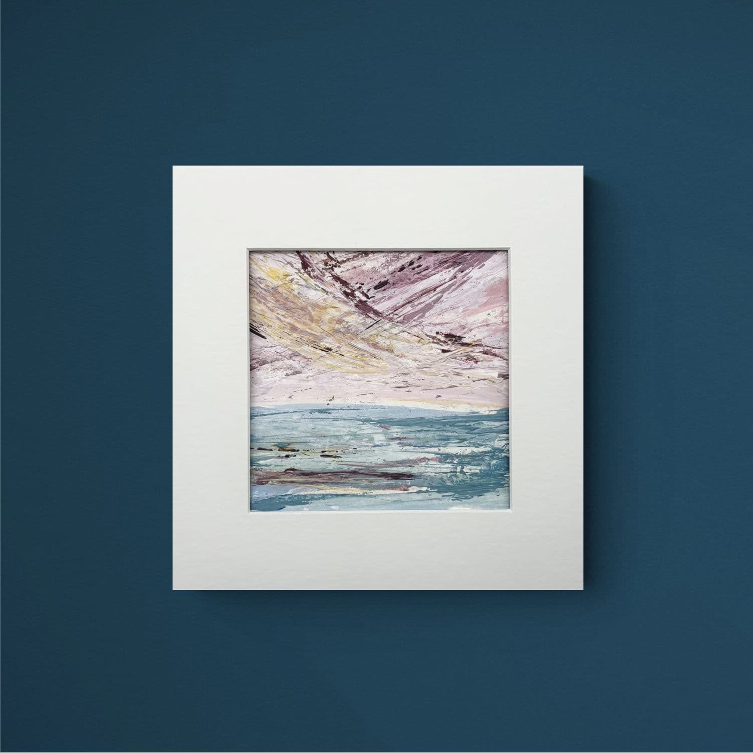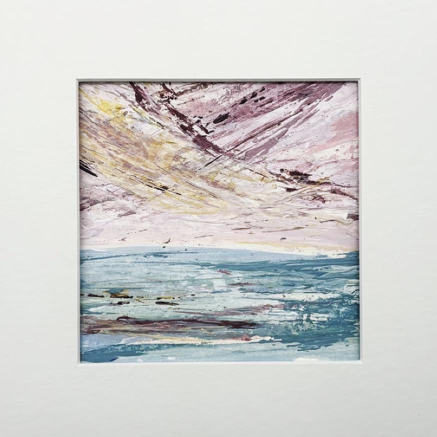 This original acrylic contemporary painting on 300gsm paper comes mounted ready for framing in a standard 8” x 8” frame.