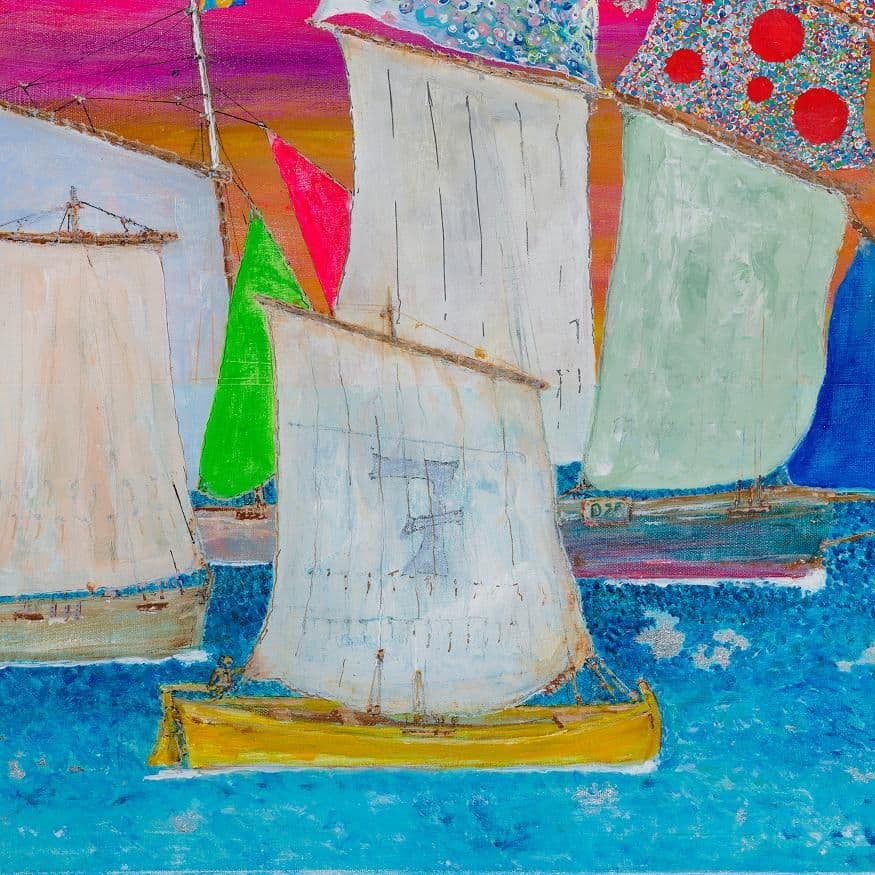 The scene depicts the parade of sail in Douarnenez, Brittany. In 2004, a record year, there were almost 2000 sailing ships, 17,000 sailors, and 30 participating countries.
