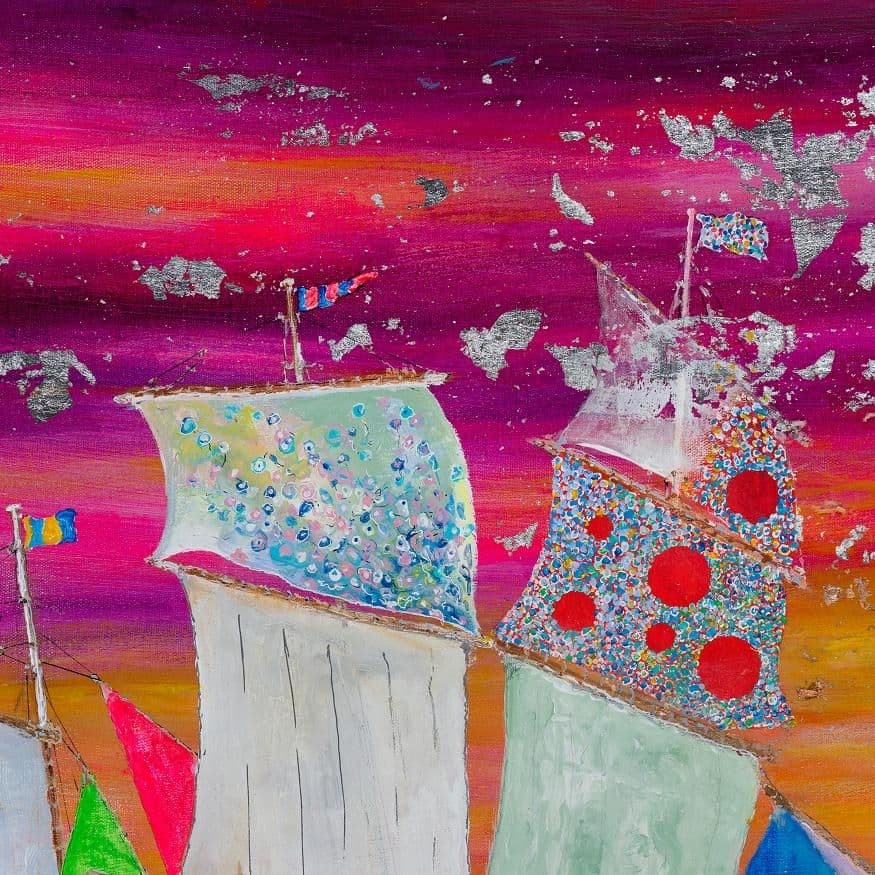 His "Boats" series exudes a sense of wonder and other-worldly charm, influenced by his years of experience as a movie marine art director and unique perspective on the world.