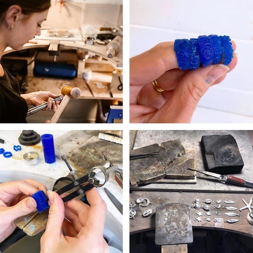Using age old techniques that blend ancient artistry with hands on craftsmanship, jeweller’s wax is carved and sculpted, capturing every curve and detail before being pressed into fine sand to leave an impression like a fossilized memory. Molten silver is then poured to complete the process.