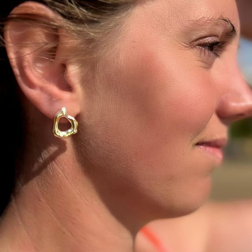 The perfect accessory to any summer outfit, the earrings has been meticulously handcrafted by Sarah Adams from recycled molten silver and then plated in luscious 18ct gold.