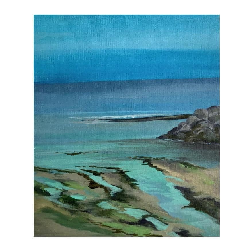 Simply entitled ‘Seaweed’ by Tracy McKenna, this striking painting captures the tide at it rolls out revealing fresh and vibrant emerald green seaweed in all its glory.
