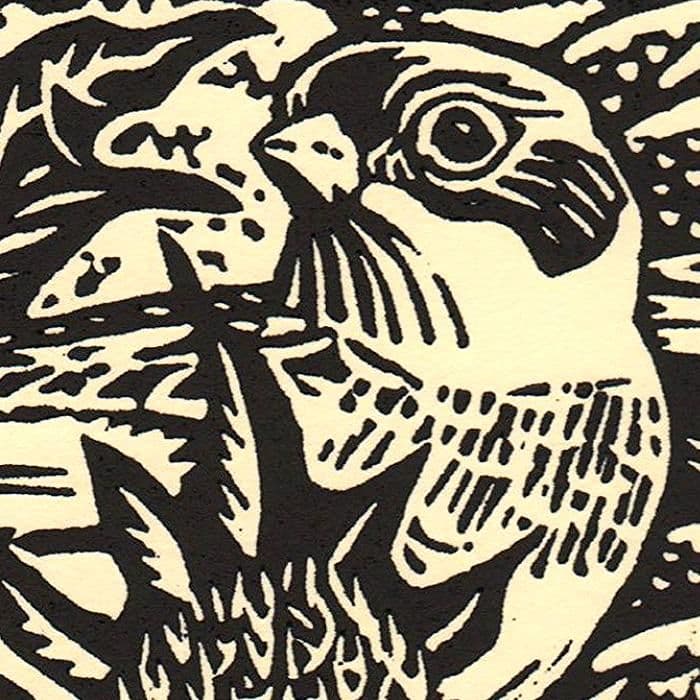 A linocut is a printmaking technique similar to that of the woodcut. The image is carved into a block of hessian covered by a thick piece of linoleum and then inked and pressed on paper to create a print. The technique really came into its own after artists like Picasso and Matisse began to work in the medium.