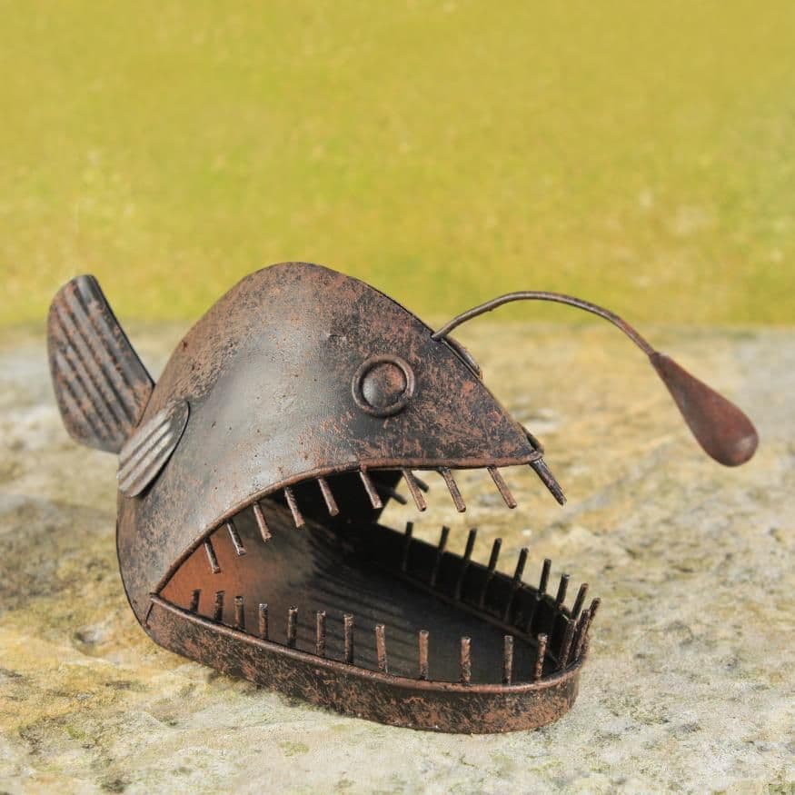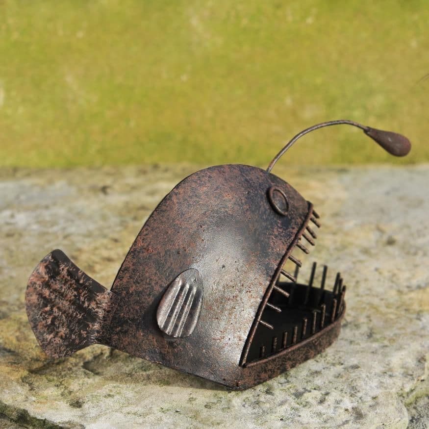 This tin model of an Angler fish has been skilfully fashioned from painted metal with a rusty colour effect.